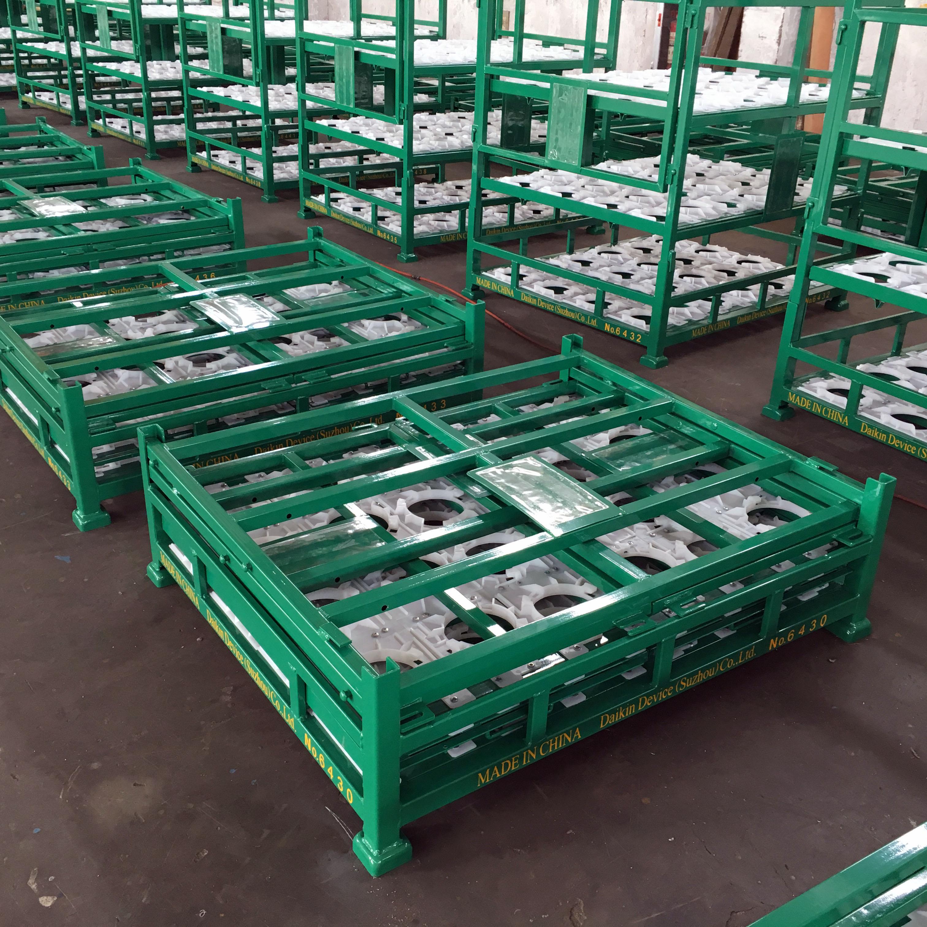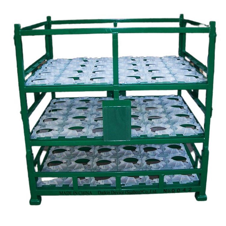 它是由铁架+塑料底座组成的。塑料底座用于固定空调压缩机,使它能够安全有序地卡在位置上。同时,有棚板的设置,使压缩机可以在同一个铁架内, 有两层或是三层的重叠。节省空间和运转的效率